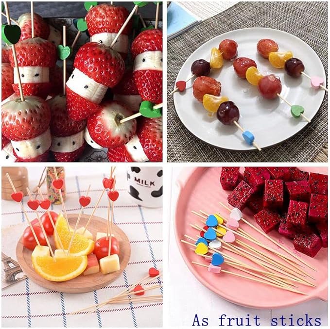 100 Pcs Pics à Cocktail 12cm Bambou avec Décor en Forme Multicolore, Cocktail Picks Gâteau Fête Mariage Approvisionnement, Cocktail Skewers Brochettes Mignon (coeur forme)