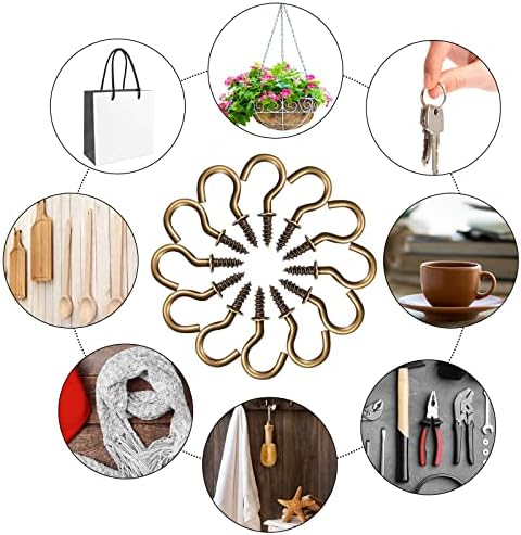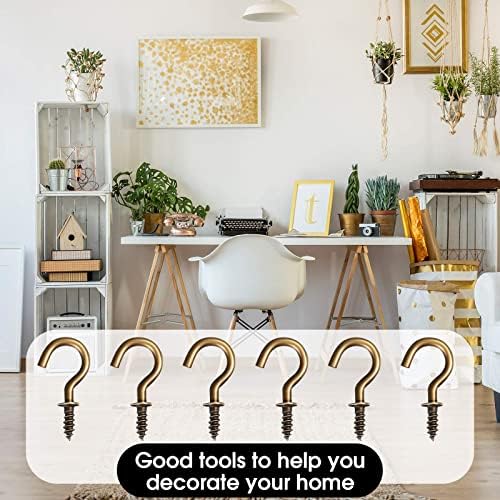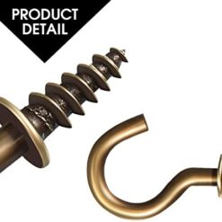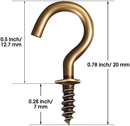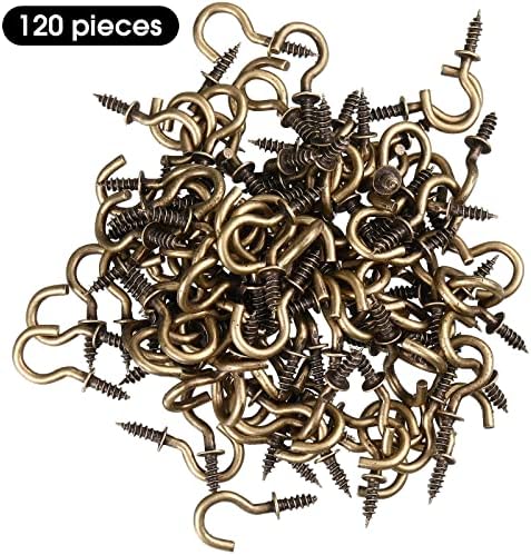 120 Crochets à Vis Crochet Métal de Tasse Cintre avec Vis Crochet de Plafond Cintre de Tasse Armoire Crochet à Vis pour Suspension Clé Utilisation Intérieur Extérieur (Bronze, 1/2 Pouce)
