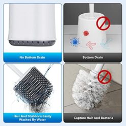 2 Pack Brosse Toilettes WC,Balai WC vec Séchage Rapide Support Ventilé,Balayette WC vec Poils Silicone pour Un Nettoyage en Profondeur,Toilette de Salle de Bain