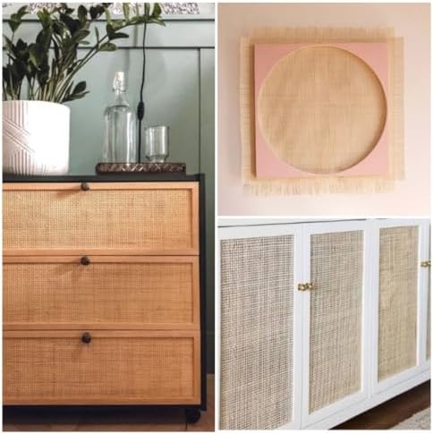 55cm de Large, Cannage rouleau pour meuble, Rotin pour Cannage, Rouleau de Cannage, 55x200cm Sangle Cannage Rotin Rouleau Canne pré-tissée Tissu en Rotin à Maille Ouverte pour Buffet Commode Chaise