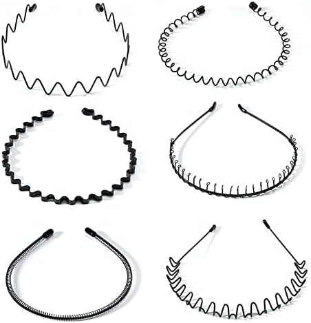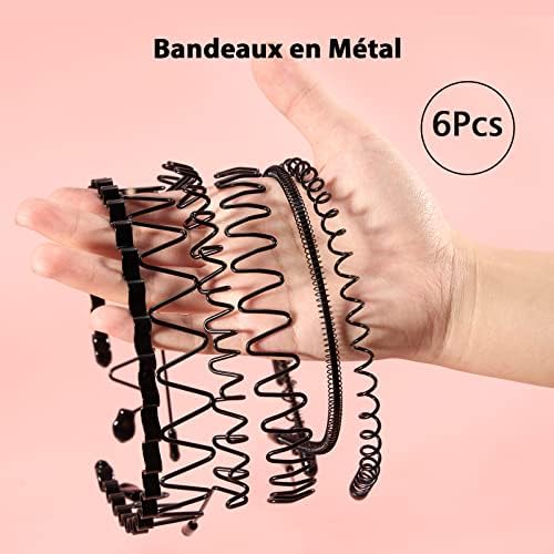 6 Pièces Bandeaux en Métal, Multi-Style Bandeaux Ondulés Élastique, Antidérapant Sport Cheveux Hoop Band, Bandeau Metal Homme, Metal Serre-tête pour Femmes, Unisexe Serre Tete Accessoires