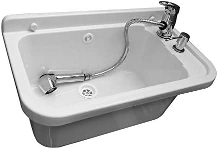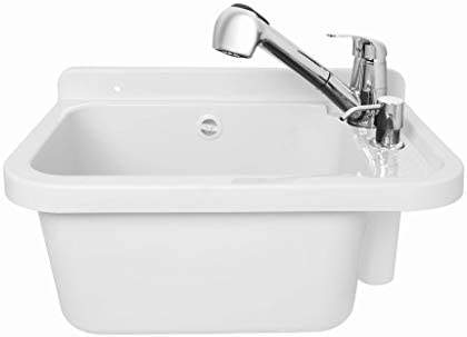 ADGO évier de Cuisine Domestique pour Lavabo à Chambre Profonde avec Batterie, Robinet et Distributeur de Savon, pour Jardin, Sous-sol de Garage, de Bains, Atelier, Usine Industrielle, 50 cm Blanc