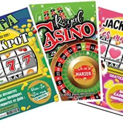 LOT DE 4 CARTES A GRATTER pour annoncer votre mariage et faire votre demande aux témoins !! ANNONCE ORIGINALE 4 cartes à gratter : 😋 2 cartes MEGA JACKPOT VERT : « VEUX-TU ÊTRE MON TEMOIN ? » 😋 2 cartes GOLDEN CASINO : « ON VA SE MARIER ! » 🤪 Différenciez facilement les cartes : 🤪Les cartes ont toutes une référence (en bas à gauche) en fonction du message à gratter. Ainsi vous pourrez les différencier si vous prenez plusieurs cartes identiques avec des messages différents: “OVSM” pour “On va se marier ! ” “VTEMonT” pour “Veux-tu être mon témoin?” “VTEMaT” pour “Veux-tu être ma témoin?” ….Attention, l’usage doit être personnel et non commercial. Notre marque est protégée, toute reproduction même partielle est interdite.