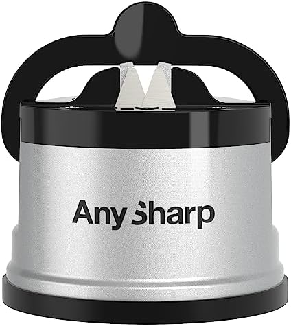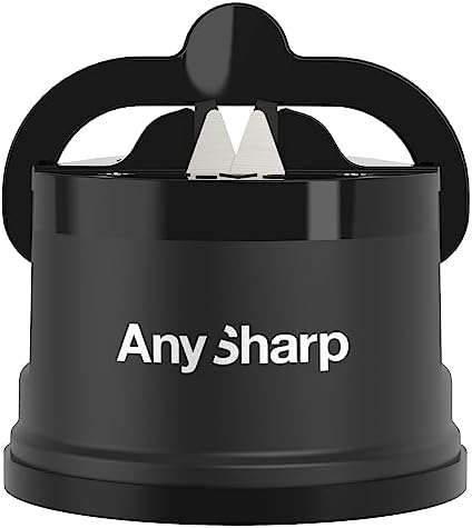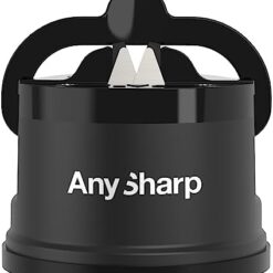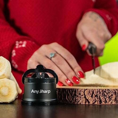AnySharp Aiguiseur de Couteaux, Sécurité Mains Libres, Ventouse PowerGrip, Aiguise en Toute Sécurité Tous les Couteaux de Cuisine, Idéal pour l’Acier Trempé & Dentelé | Le Meilleur au Monde | Noir