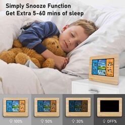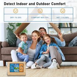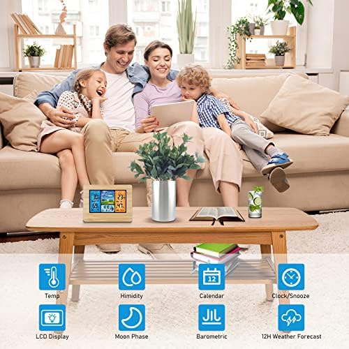 AOZBZ Station météo numérique sans Fil avec capteur extérieur, thermomètre intérieur et extérieur avec Temps, température, humidité, baromètre, réveil (Bois Updates)