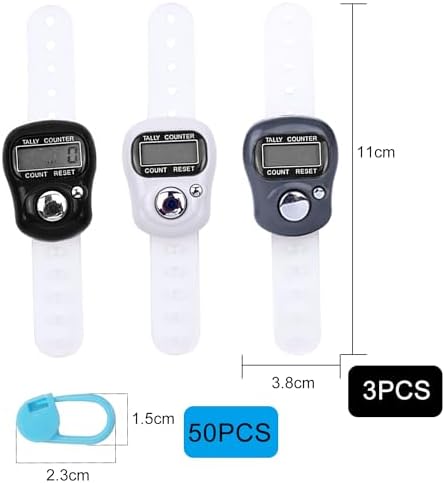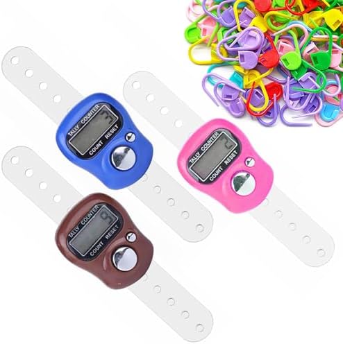 AQSQWQ Lot de 3 Compteurs de Doigts Électroniques, Électroniques Mini Compteurs de Comptage Manuels avec 50 marqueurs de Mailles à Tricoter, pour Tricot Golf