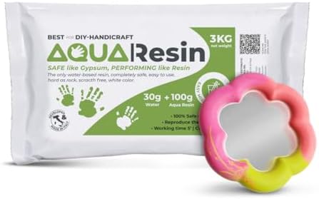 Aqua Resin – Résine minérale en Poudre Blanche 100% Non Toxique et sûre à mélanger avec de l’eau, colorable et idéale à Utiliser dans Les moules (3 kg)