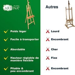 Soyez le premier à laisser votre avis sur “Artina Grand Chevalet d’Atelier 66×225 cm Barcelona – Chevalet Tripode en Bois de Hêtre Réglable avec Support de Peinture – Chevalet Bois Pliable pour Toiles jusqu’à 120cm” Annuler la réponse