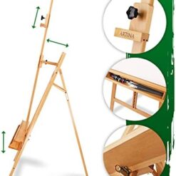 Artina Grand Chevalet d’Atelier 66×225 cm Barcelona – Chevalet Tripode en Bois de Hêtre Réglable avec Support de Peinture – Chevalet Bois Pliable pour Toiles jusqu’à 120cm
