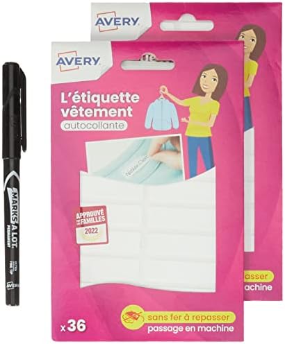 Soyez le premier à laisser votre avis sur “AVERY – Lot de 72 Étiquettes Vêtements Autocollantes + 1 Marqueur Permanent Offert (2 Sachets de 36 Étiquettes), Format 45 x 13 mm” Annuler la réponse