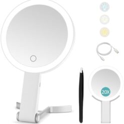 B Beauty Planet Miroir grossissant avec lumière, 20x/1x, Double Face, Miroir de Maquillage Portable, éclairage 3 Couleurs, écran Tactile à intensité Variable