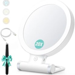Soyez le premier à laisser votre avis sur “B Beauty Planet Miroir grossissant avec lumière, 20x/1x, Double Face, Miroir de Maquillage Portable, éclairage 3 Couleurs, écran Tactile à intensité Variable” Annuler la réponse