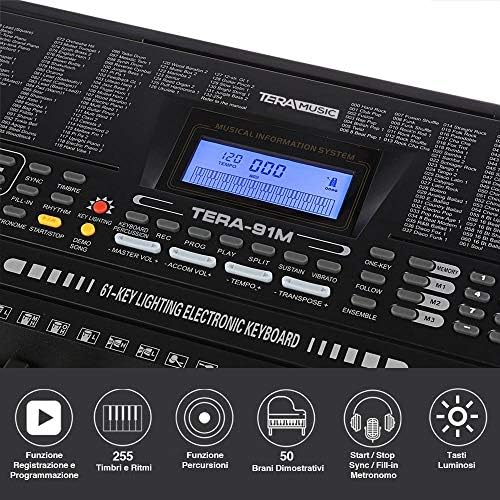 Soyez le premier à laisser votre avis sur “Bakaji Clavier musical électronique 61 touches lumineuses piano multifonction avec 255 rythmes 50 pistes prédéfinies fonction percussion entrée AUX pupitre porte partition/tablette”