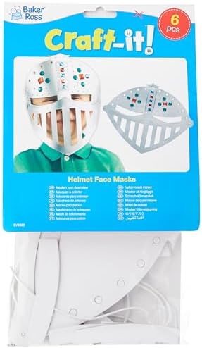Baker Ross Masques de chevalier à décorer – Loisirs créatifs pour enfants, Blanc, 28 cm (Lot de 6)