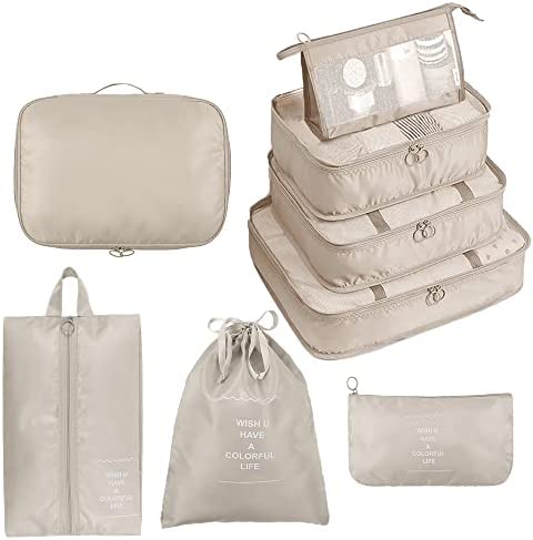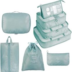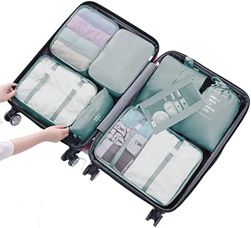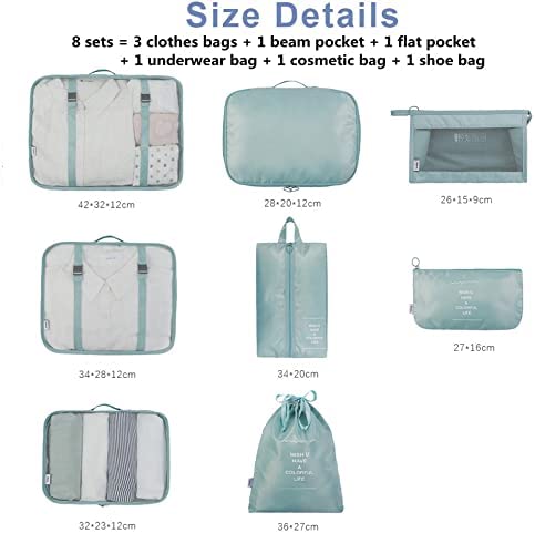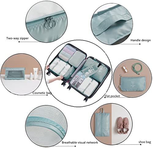 Bansga Ensemble de 8 Organisateurs de Voyage emballant des Cubes Sac de blanchisserie Bagage Sacs de Compression Sac dans Le Sac Organisateur pour des vêtements(Blue)