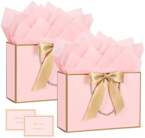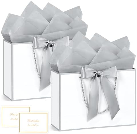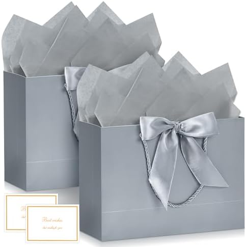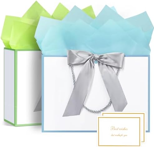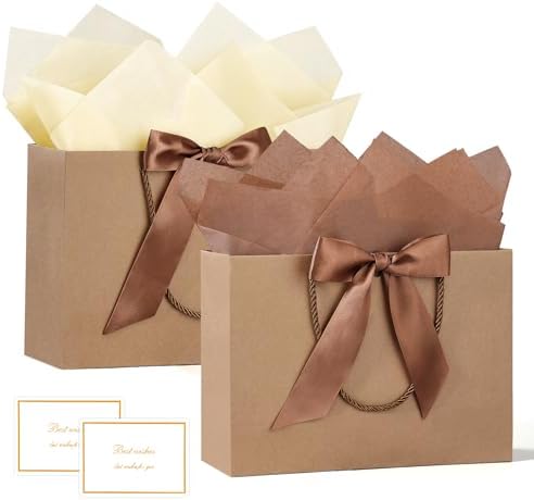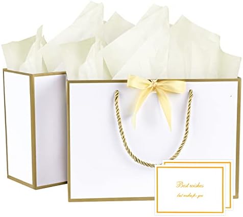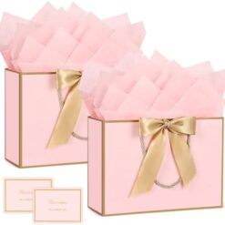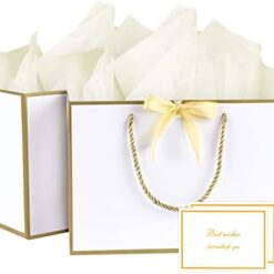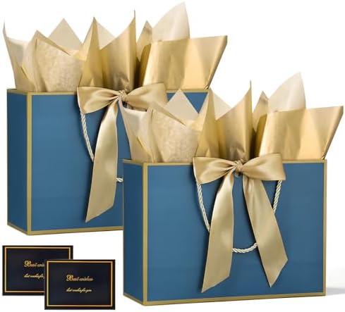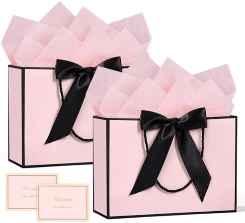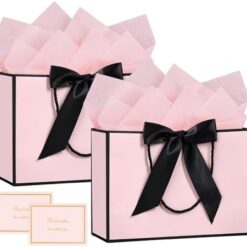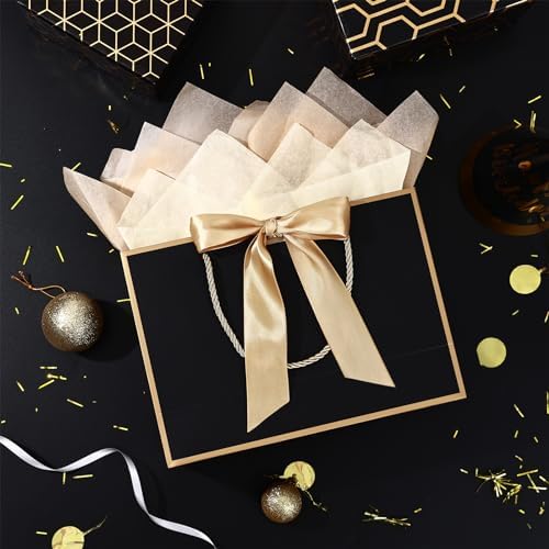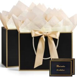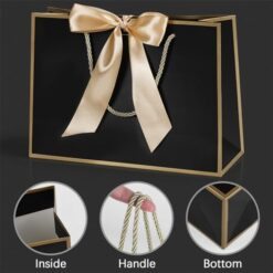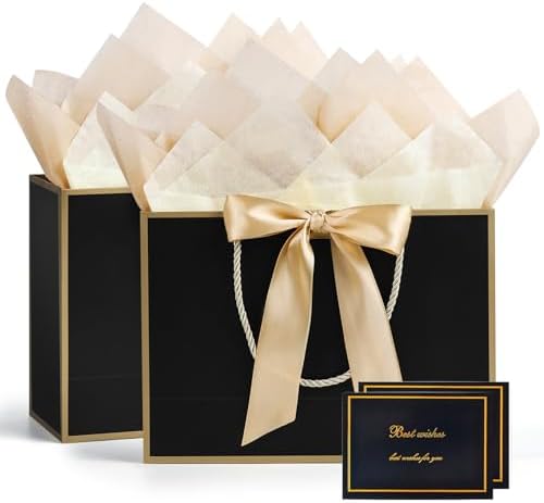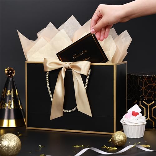 BBLIKE Pochette Cadeau Papier – 2 Pièces Sac Emballage Cadeaux Grand Format Avec Anse, Gift Bag Paquet XXL Luxe Avec Noeud + 2 Cartes + 4 Mouchoirs Pour Fête d’Anniversaire, Mariage (Noir-Gold)