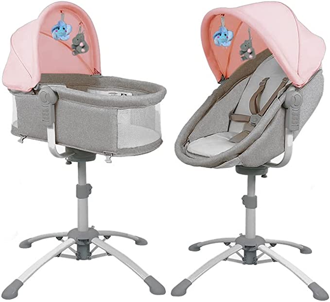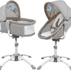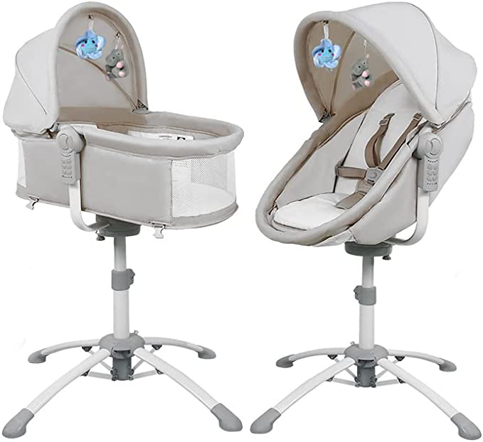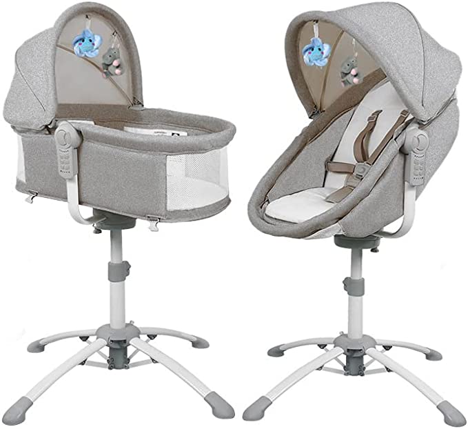 bebe2luxe : LOUNA 4 en 1: Berceau, Balancelle Electrique, Chaise Haute, Transat (Gris)