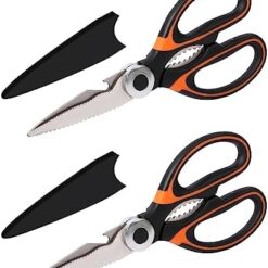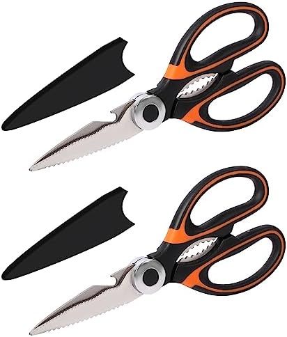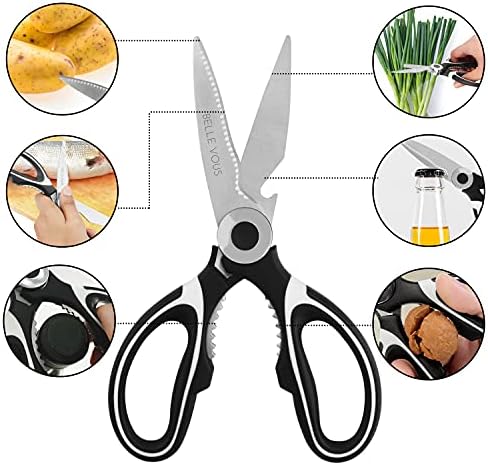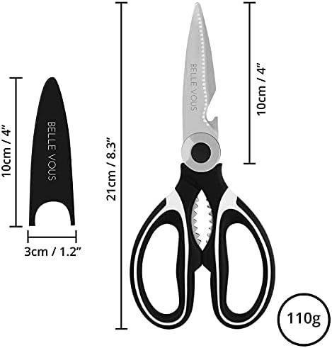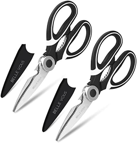 Belle Vous Ciseaux Cuisine Multifonction avec Protection de Lame (Lot de 2) – Ciseaux Volaille Longueur Total 21 cm – Ciseaux Acier Inoxydable pour Poulets, Os, Viandes, Herbes, Légumes, Barbecue