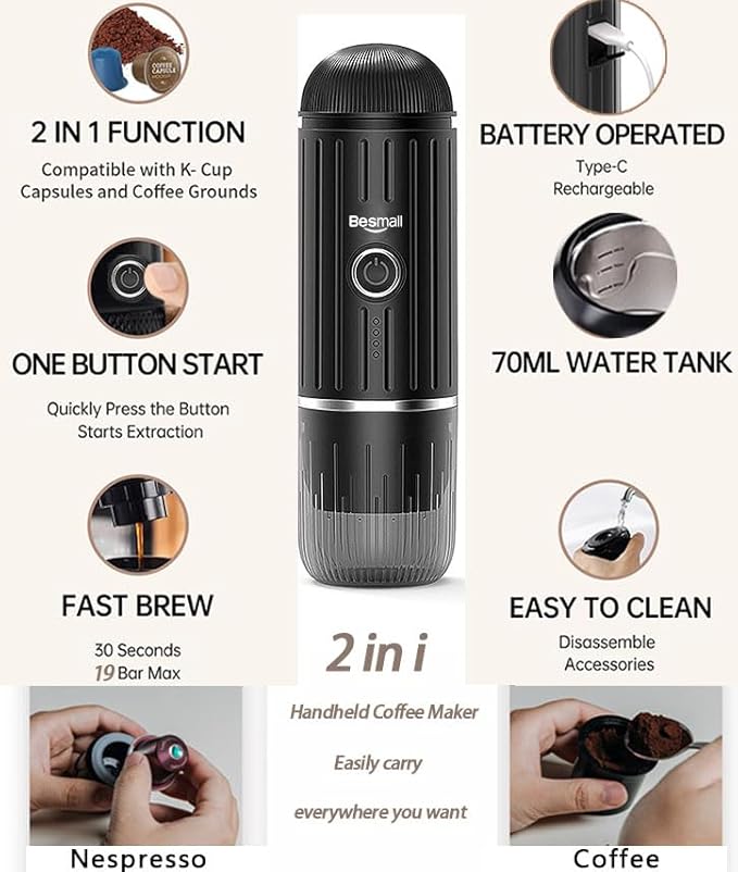 Soyez le premier à laisser votre avis sur “Besmall Auto-Chauffage Mini Cafetière à Espresso Portable Chauffante à Piles, Rechargeable Cafetiere de voyage pour capsules expresso ou café moulu, Cafetière pour Voiture Prise USB-Type C 12V”