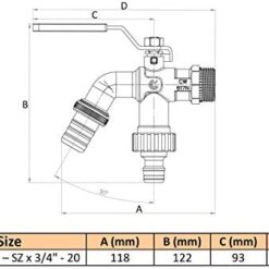 BFG Robinet d’eau, entrée 25mm, laiton, polyéthylène, acier inoxydable, 25mmx¾ », 19×9.5x8cm, 440g, deux sorties indépendantes (ouverture et fermeture), durable, résistant au gel.