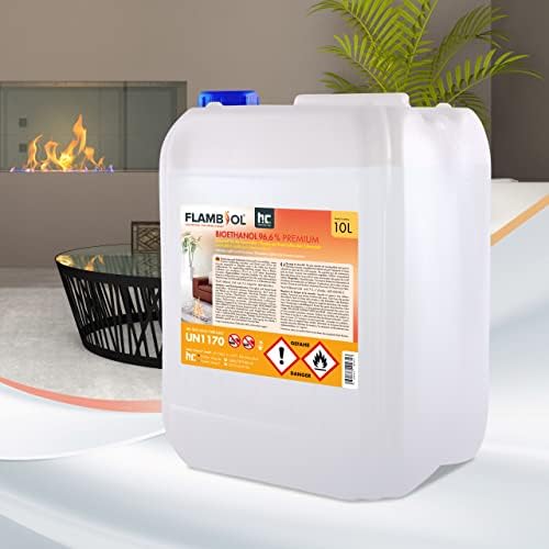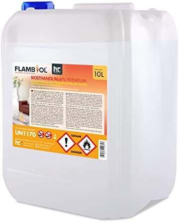 Bioéthanol 96,6% Premium 10 litres – pour cheminée à éthanol, Foyer à éthanol
