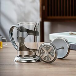 BIRJXVTO Cafetière à Presse française Verre Théière Teapot en Acier Inoxydable Résistant À La Chaleur Méthode De Fabric Cafetières à Piston(600ml)