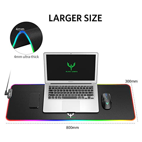 - 9 modes d’éclairage RGB Chroma: Blade Hawks Tapis de Souris incluant 2 modes dynamiques: arc-en-ciel et modes de respiration. 7 modes d’éclairage statiques: rouge, bleu foncé, jaune, vert, rose, Bleu, bleu glace. Obtenez un affichage de couleurs et d’effets époustouflant.