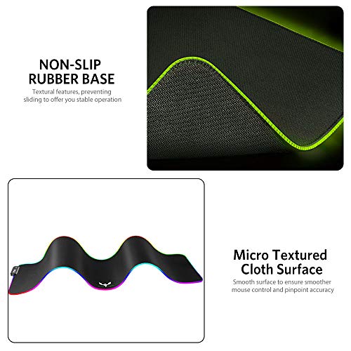 - Pratique et facile: Ce tapis de souris rétro-éclairé est alimenté par USB et ne nécessite aucun pilote. Un seul bouton de commande permet de basculer facilement entre le mode rétro-éclairage et la luminosité même s’éteint. Convient à tous les types de souris.