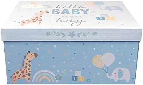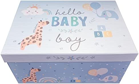 Boîte à souvenirs avec couvercle – Bleu layette – Idéal pour anniversaire, Noël, baptême et fête prénatale – Panier cadeau pour bébé garçon – 34 x 23 x 14 cm