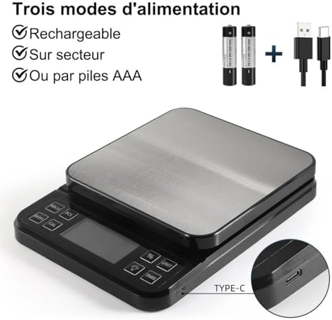 Soyez le premier à laisser votre avis sur “BOMATA Balance de cuisine grande taille, précision de 0,1 g, balance de boulangerie de 5 kg fonction pourcentage, rechargeable par USB, écran LCD à angle complet avec rétroéclairage, Noir et Argent” Annuler la réponse