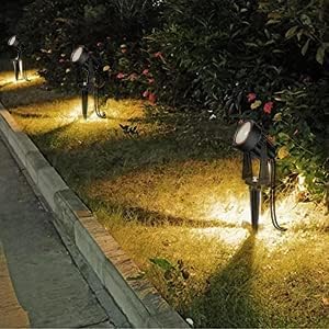 Bomcosy Spot LED Extérieur DC12V, Lot de 4 Spot Éclairage à Piquer, 14M Exterieur Projecteur LED Eclairage, 2700K Blanc Chaud Pour Jardin, Chantier, Aire de Jeux, Terrain de Basket