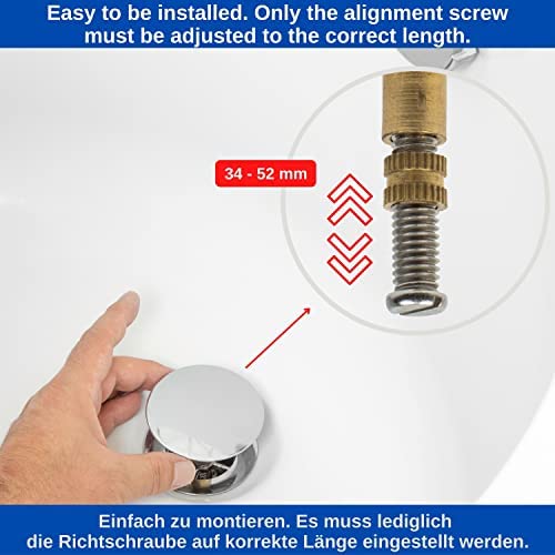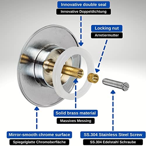 Bouchon de Baignoire, Ø 72 mm, avec Double Joint, Réglable en Hauteur, Bouchon de Baignoire Universel, Clapet de Lavabo, en Laiton Trempé avec Finition Chromée, Bonde de Baignoire Antirouille