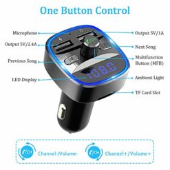 - ♫【Détection de Tension de Voiture & Lumière Ambiante Bleue】Le transmetteur FM affichera le voltage de la voiture quand il sera branché à l’allume-cigare. Tenez-vous au courant de l’état de batterie de voiture en tout temps pour éviter les problèmes de conduite. Avec le cercle de rétroéclairage bleu en bas simplifie grandement vos opérations pour une conduite plus sûre.