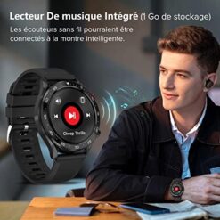 BRIBEJAT BT2 Montre Connectée Homme avec Appel,Montre Intelligente Étanche IP68,10 Mode Montre Sport Homme avec Podomètre Sommeil 128MB Mémoire Musicale,Smartwatch Fitness pour Android iOS,Noir