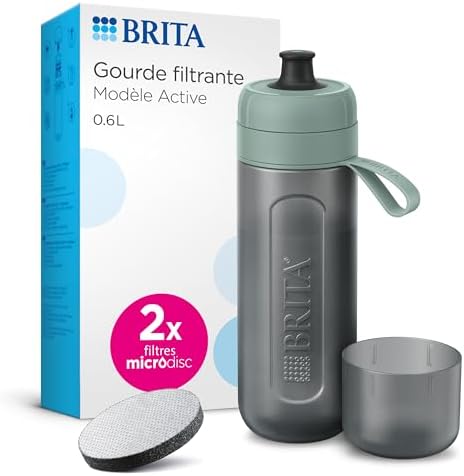 BRITA Bouteille Filtrante Active 0,6L Vert Foncé Inclus 2 MicroDiscs