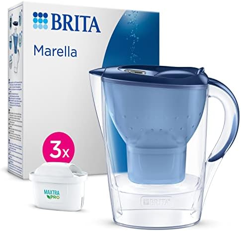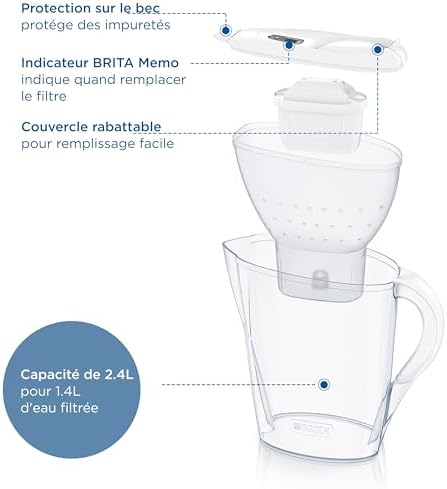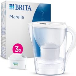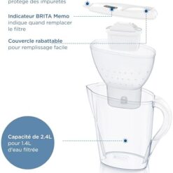 BRITA Carafe Filtrante Marella Blanche (2,4l) incl 3 cartouches filtrantes eau robinet MAXTRA PRO All-in-1 réduit PFAS,calcaire, chlore, certaines impuretés et métaux indicateur temporel éco-emballage