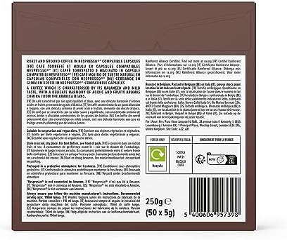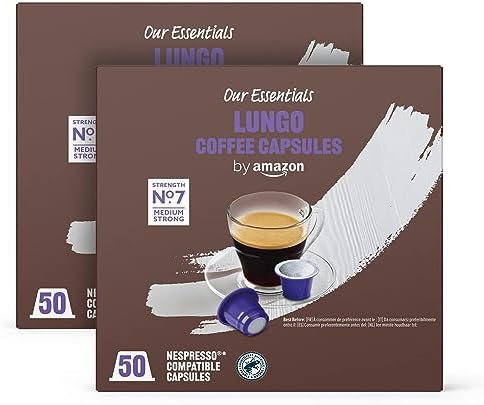 by Amazon Capsules de café Lungo compatibles Nespresso, 100 capsules (2 paquets x 50) – Certifié Rainforest Alliance