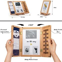 Cadres Photo en Bois de Bébé avec Empreinte Mains et Pieds de Bébé + échographie + Boîte à Dents De Lait + Carte information sur la naissance,5 in 1 Souvenir Pour Nouveau-Nés,Garçons Et Filles