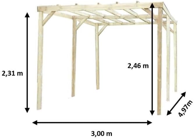 Carport Autoclavé toit plat sans couverture / surface extérieure : 15,00 m2