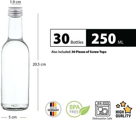 casavetro 30 x 250 ml Bouteilles en verre vides transparents avec bouchon à vis Gin Huile Vinaigre Soda Vodka Eau (30 x 250 ml)