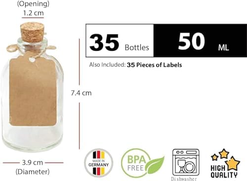 Soyez le premier à laisser votre avis sur “casavetro 35 x 50 ml Petites bouteilles en verre avec couvercle en liège Bouteilles en verre pour cadeaux de mariage Set Party Favors (35pcs)”