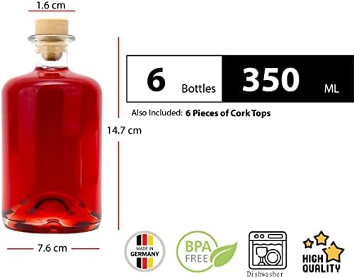 casavetro Lot de 6 bouteilles en verre, vides, 350 ml, avec bouchon, pour l’eau, le vin, le vinaigre, l’huile, à remplir, 0,35 l