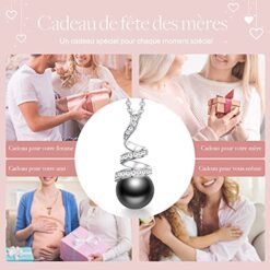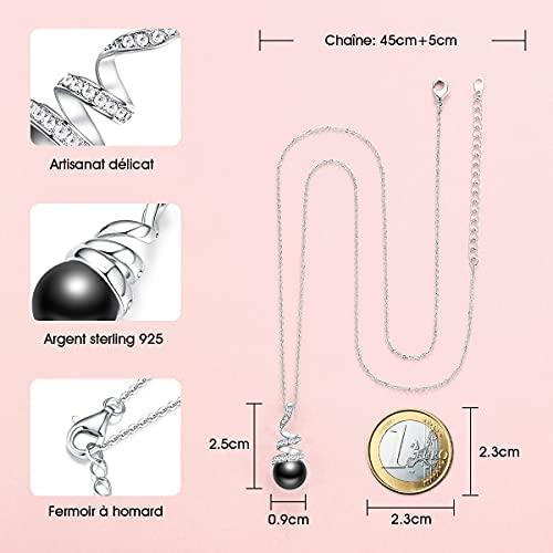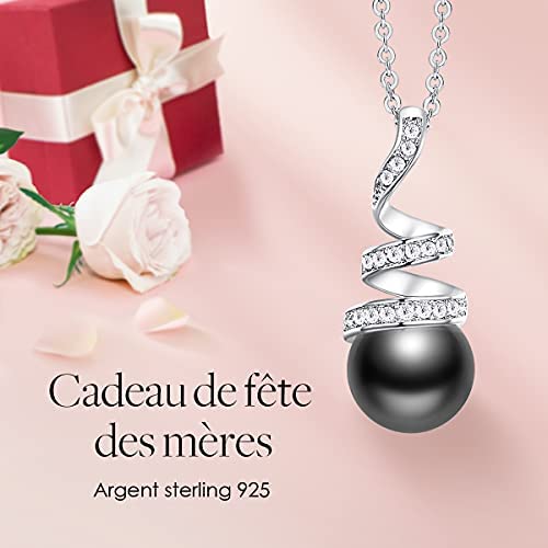 CDE Cadeau de Fête des Mères Colliers Perles pour Femme Collier en Argent Sterling 925 Collier Pendentif Perles avec Cadeaux Saint-Valentin Cadeau de Fin d’études pour Fille Petite Cadeau de Noël