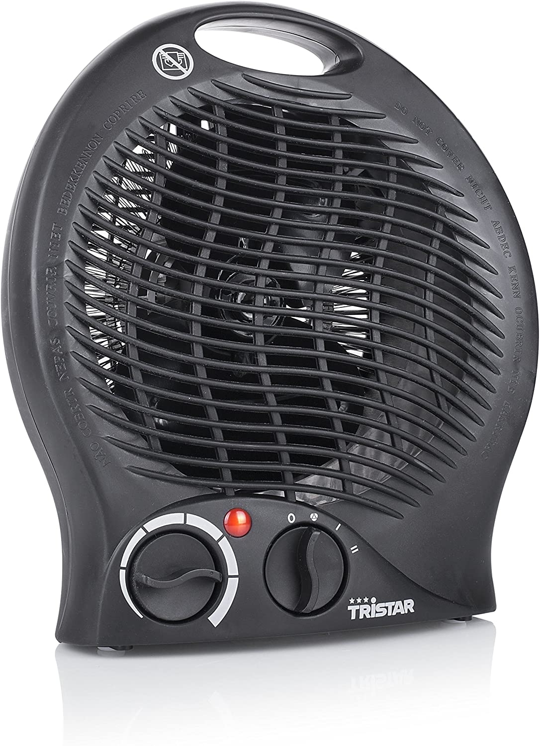 Radiateur électrique soufflant Tristar, mode d’emploiLes raisons de choisir le radiateur électrique Tristar :Facile à utiliser grâce aux deux cadrans rotatifs sur l’avant de l’appareilThermostat réglable et deux modes de 1 000 et 2 000 W pour un chauffage optimal des petites piècesParfait à la maison comme chauffage d’appointPeut chauffer en hiver et refroidir en été grâce au mode ventilateurFacile à ranger grâce à sa taille de 12,8 x 22,3 x 26,1 cm