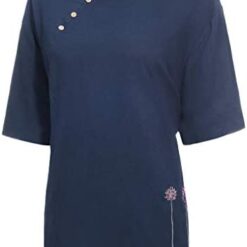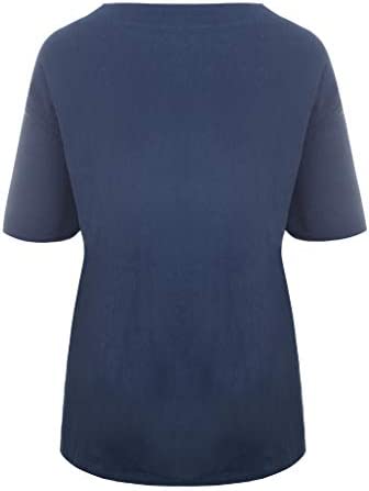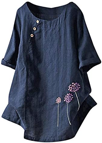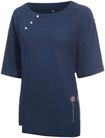 Chemisier aux Femmes Coton et Lin Grande Taille Ancien Broderie Décontractée Hauts(C Marine,2XL)