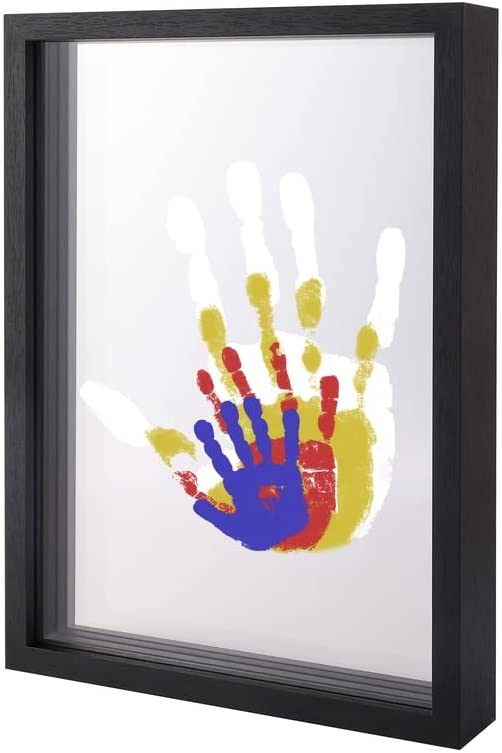 CHERRY CHEERS Kit d’empreintes de mains familiales, cadre en bois souvenir artisanal, coffret cadeau Endlos, peintures non toxiques, feuilles transparentes (Noir)