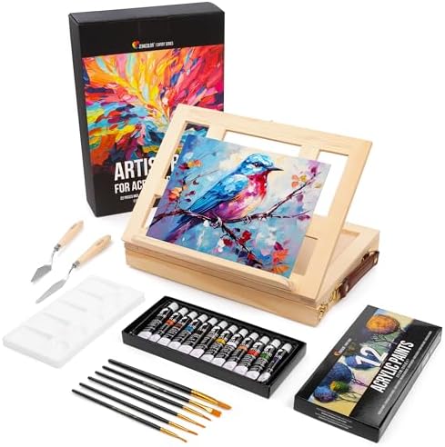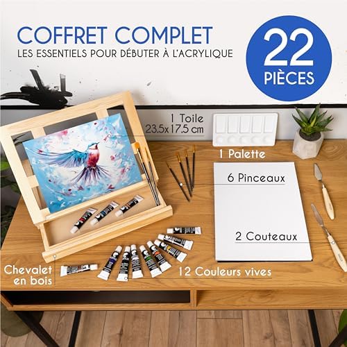Soyez le premier à laisser votre avis sur “Chevalet Peinture Acrylique 22 Pièces – Coffret Peinture, 12 Peintures Acryliques, Toile à Peindre, 6 Pinceaux, 2 Couteaux et 1 Palette – Coffret Cadeau pour les Artistes”