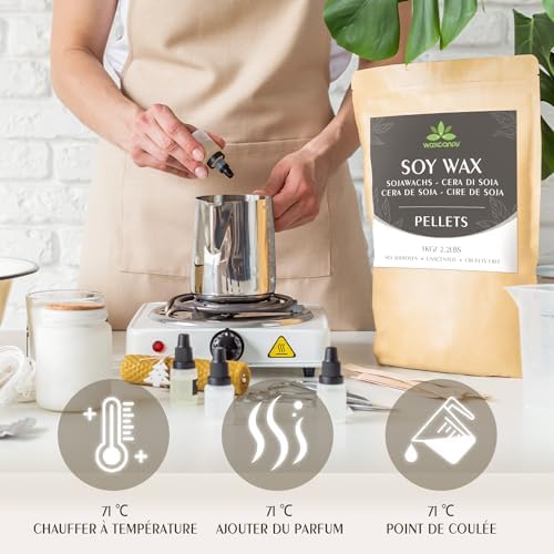 Cire de soja pour bougies, Cire premium pour bougies 5kg de Waxcanpy, Cire de soja écologique 100% naturelle pour bougies