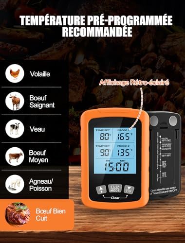 Soyez le premier à laisser votre avis sur “CIRYCASE Thermomètre Cuisine avec Sondes Doubles de 16.3cm, Minuteur et Température Préréglée Thermometre Cuisson Lecture Instantané avec Écran LCD & Arrêt Automatique pour Barbecue/Fumoir/Grill/Four” Annuler la réponse