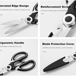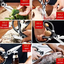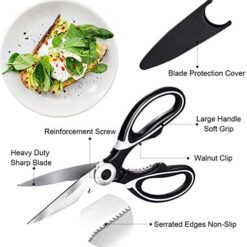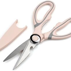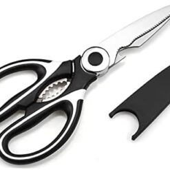 Ciseaux Cuisine, Ciseaux Cuisine Robustes, Professionnel Acier Inoxydable Ciseaux,Multiusage Ciseaux avec Couvercle pour Poulet Poisson Légumes et BBQ, Décapsul (Blanc & Rouge)